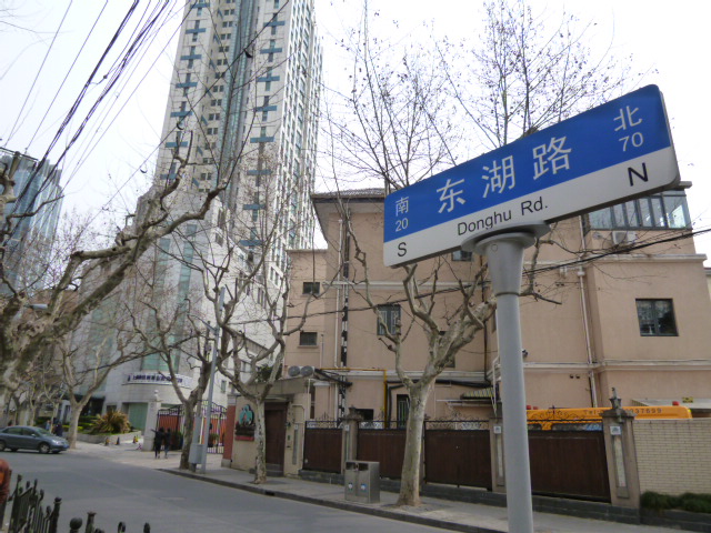 淮海路を西に進に、譲陽公園を過ぎた後で右斜めに入っていく短い通り。