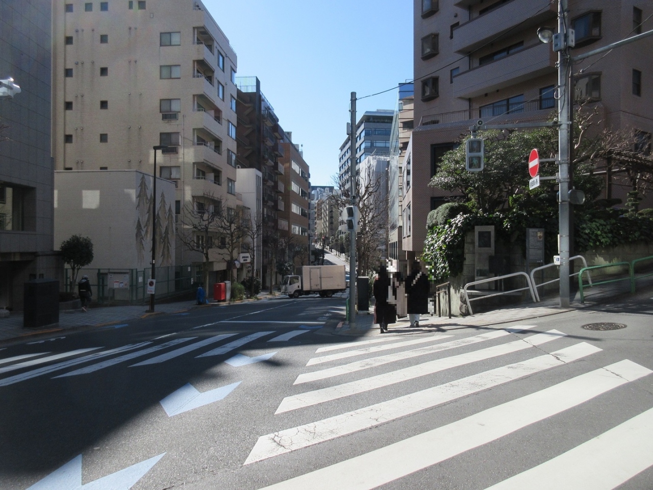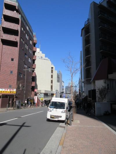 さほど勾配のきつくない坂道で、坂の向こうには靖国通りを車が行きかう様子が見えていました。