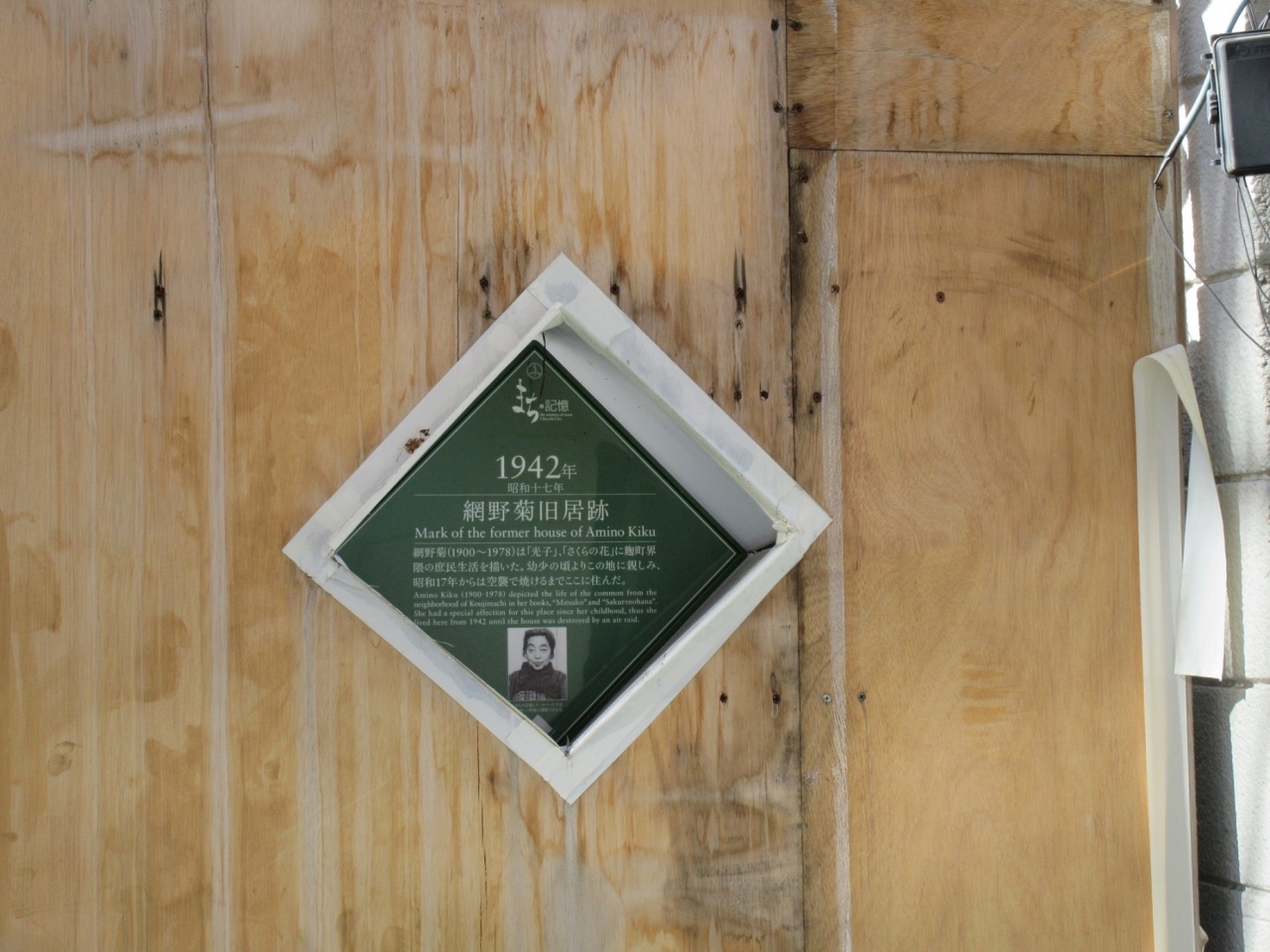 市ヶ谷周辺を散策した際、【網野菊旧居跡】の説明プレートが工事の仮囲いに設置されていました。網野菊は大正末期から昭和にかけて活躍した小説家の網野菊が昭和17年から空襲で焼けるまでこちらで暮らしていたことが記載されていました。千代田区の図書館は解体工事が行われていますが、この案内板は仮囲いに組み込むようにして残されていました。工事関係者の方、千代田区のご担当の方の努力に頭が下がる思いがしました。