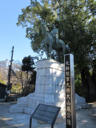 市ヶ谷から九段周辺を散策した際、九段坂公園内にある、こちらの大きな【大山巌像】を見学しました。薩摩藩出身で、日露戦争で活躍した陸軍大将として知られています。かつて「陸の大山、海の東郷」といわれるほど、たたえられた人物です。【大山巌像】は写真で見たことのある大山巌とそっくりで、騎馬像となっている事も、陸軍大将であった彼にふさわしいでと思いました。