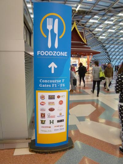 スワンナプーム国際空港内、免税店などが並ぶ一角にファストフード店やアイスクリーム屋が集まった一角があります。とにかく広い空港ですし、一休みしたい時などには丁度良いと思います。ただ、時間帯によっては混んでいてゆっくり出来ないこともあるので、そのあたりは上状況をみてご判断ください。