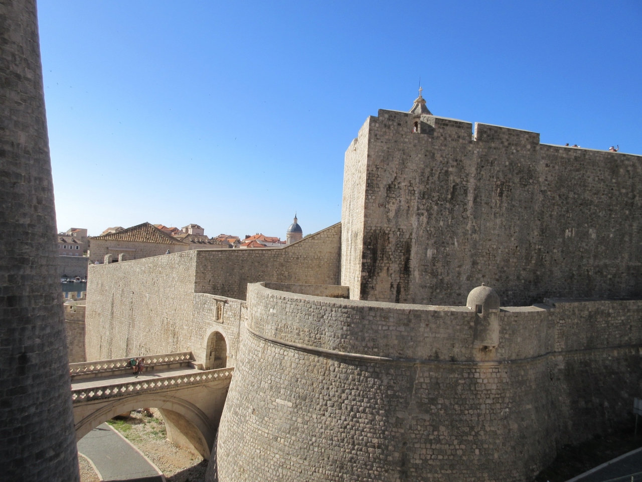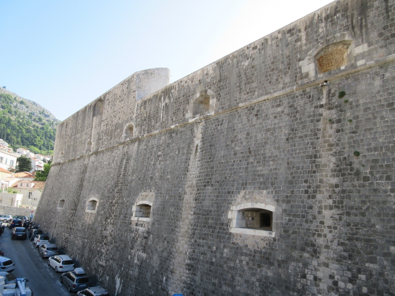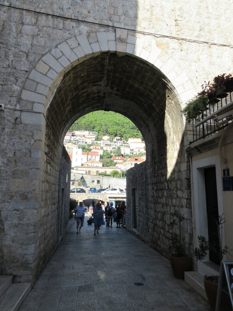 ドブロブニクの城壁内にあるホテルから【スルジ山】へのケーブルカー乗り場に行く際などに利用したこじんまりした門がこちらの【ブジャ門】です。【ピレ門】や【プロチェ門】のような堅牢な造りの門ではなく、キーストーンには1908の文字も刻まれていますし、近代になって街の生活上の理由から新しく穿たれた城門のように見受けられました。城壁外に出ると目のまえに駐車場や自動車道路があったりと、住民にとっては必要不可欠な門だと感じました。