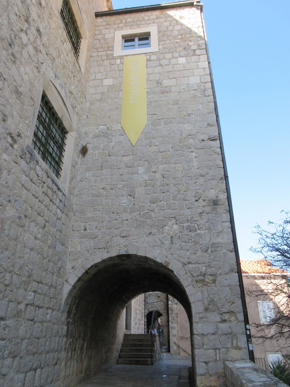 【ドブロブニクカード】の提示で入場料がフリーにあるスポットということで、昼ごはんの後で訪れたのがこちらの【民俗学博物館】です。南側にある城壁の裏にあたる場所で、地図を頼りに路地裏を不安になりながら気力を振り絞って進んで漸くたどり着くことが出来ました。目抜き通りの【プラッツァ通り】を基準にするとかなりの高台になっていて、足の不自由な方には厳しいと思います。館内は民族衣装や、昔の生活用具などが展示されていて興味をそそられました。