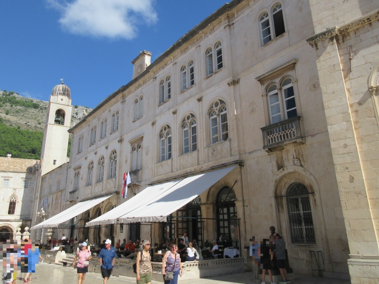 【ドブロブニク旧市街】の【プラッツァ通りの東端にある【ルジャ広場】に面した白亜の瀟洒な建物がこちらの【ドブロブニク市庁舎】です。各層ごとに少しずつ異なる装飾の施された建物で、一階にはレストランが入っていてお贅のお客さんで賑わっていました。建物の正面右側にはクロアチア人の劇作家として有名なマリン・ドルジッチの座像が置かれており、何人かの観光客が足を止めて見入っていました。