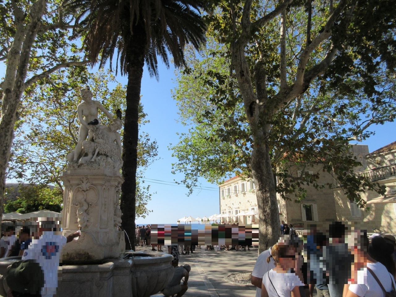 レ門の目の前にある広場のような通りがこちらで、バスや自動車がひっきりなしに通るので、絶えず賑わっています。ツーリストインフォメーションやレストラン、さらにの前は開けているので、エメラルド色をしたアドリア海やボカール要塞が見えています。人が多すぎで落ち着かないので、私は早々にピア門をくぐって城壁内に入りました。