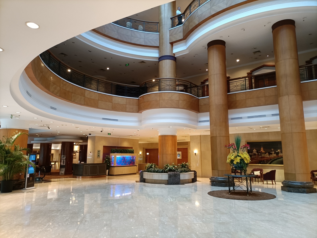 上海駅の南口を出てするそばにある旧 Holiday Innのホテルを上海滞在の際に利用しました。改装されたばかりなのか、エントランスホールは吹き抜けで天井も高く、落ち着いた雰囲気でまとまっていました。受付カウンターの後ろの中国らしい漢字を多用した壁面装飾も好感が持てました。円安の関係で一泊10,000円を超えていましたが、上海駅に近く、ちかくに「北横通道」というバイパスが開通しており日系企業も多い長寧区方面へのアクセスも良くなっていました。