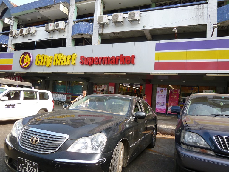 ボージョーアウンサン・マーケットのすぐ横。マレーシア系の百貨店。