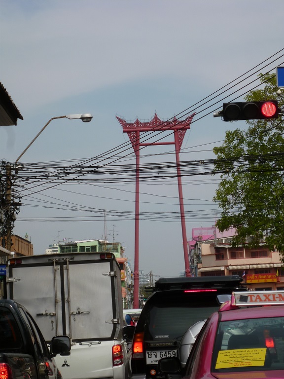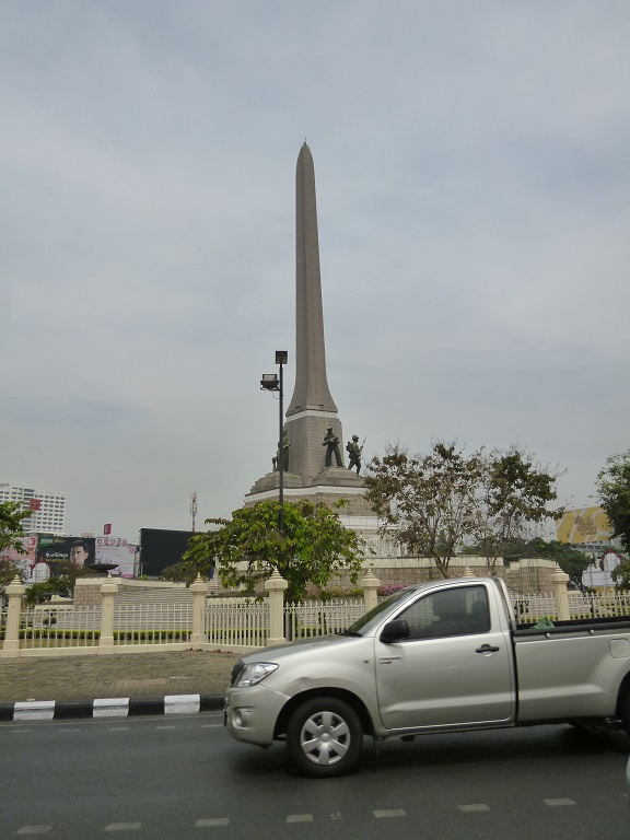 タイで1932年に起こった立憲革命を記念して立てられたとのことで、中央の円筒形の小塔を周囲の帆船の帆のような4本のモニュメントが囲むという、非常に整った記念塔です。交通量も非常に多い場所なので、訪れる際には交通事故にくれぐれもご注意を。