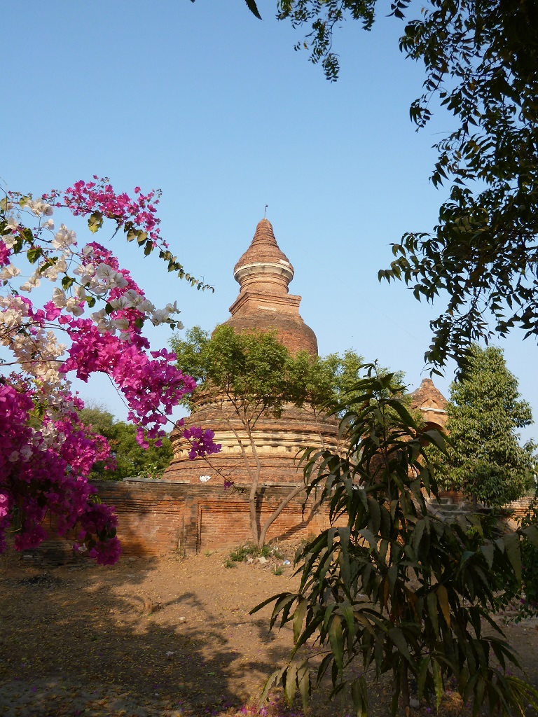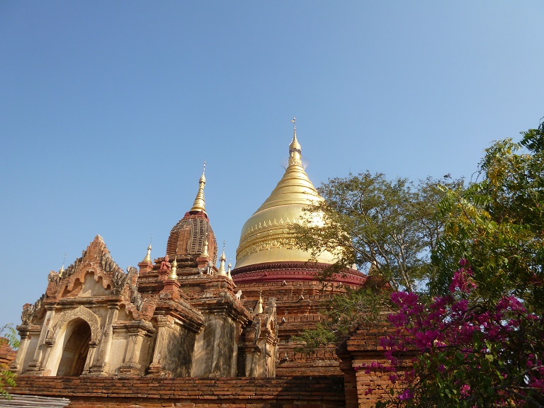金色の太っちょの仏塔で、ニャウンウー村にあるシュエズィーゴン・パヤーと似た雰囲気ですが、こちらははるかに訪れる参拝客が少ないです。三層構造のテラスには小さな仏塔が建ち、景観にアクセントを与えています。