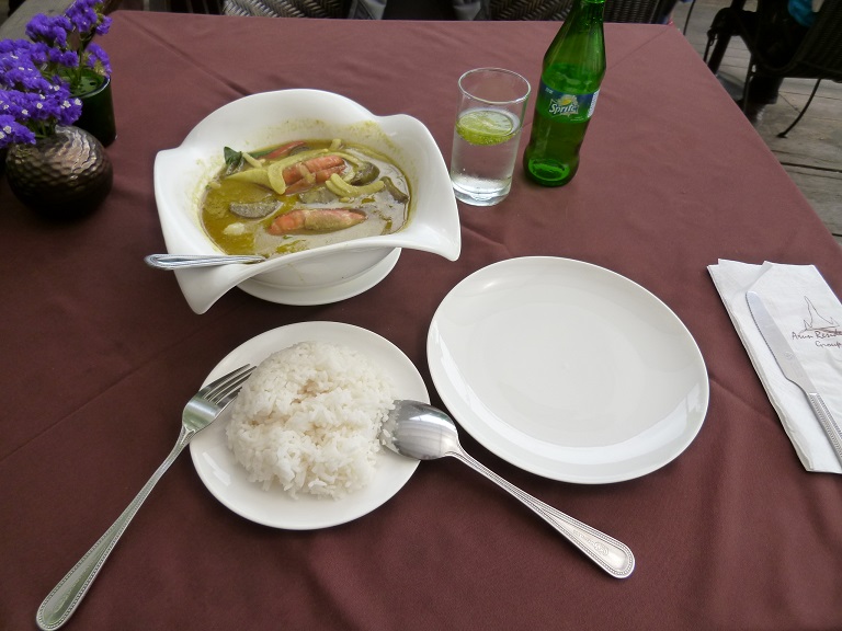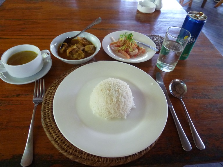 パガン遺跡群観光の初日、遠慮するミャンマー人ドライバーと一緒に利用しました。二人で8000チャット(約800円)ですので一人当たり500円未満・・・。タラバー門にも近いオールドパガンの中心でこの値段は非常にお得かと思います。ただ、ミャンマー式のカレーを3種類ほど頼みましたが、油っこいので途中で飽きてきました。多くても2種類で十分だと思います。