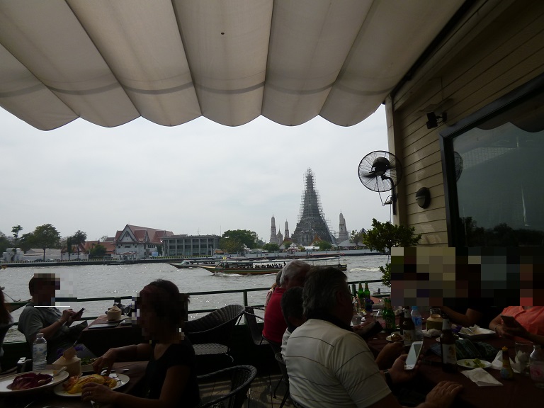 チャオプラヤー川の風に吹かれながらワットアルンを眺めることの出来るレストランです。
