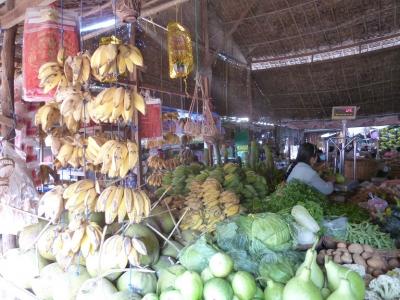 パガン滞在の際、ホテルから歩いて訪れてみました。村の中のマーケットということで規模はそれほど大きくはないのですが、果物や野菜といった豊富な農作物を売る露天商が一つ屋根のいくつも店を構え、威勢の良い声が響いています。規模もそれほど大きくはないのですが、農作物以外にも雑貨など様々な商品もあり、規模も程よい大きさ(小ささ)なので見ていて楽しいです。時間があれば覗いてみては如何でしょうか?