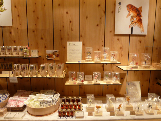 浅草の飴細工のお店が東京スカイツリータウンソラマチに店舗を構えています。ガラス工芸品からと思って近づくとなんと飴細工。驚くほど精巧な金魚や鶴、猫などを展示販売しています。お値段にも驚きますが、その精巧さを考えると納得かなと。