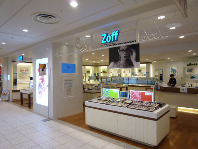 Zoffは全国展開しているお手頃価格のメガネ屋さんです。デザインも良く、豊富な品揃えでJINS眼鏡と並んで勢力拡大中です。ソラマチではファッション専門店の集まる3Fのユニクロのすぐそば、時計のチックタックさん横にあります。