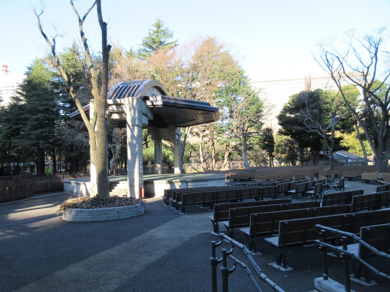 日比谷公園の中を散策し、南の市政会館近くにある野外音楽堂に目が留まりました。市民運動に関するイベントや、コンサートなど様々な用途に使われていて、昔からテレビニュースなどで良く名前を聞いていた場所ということで、年甲斐もなく興奮を覚えました。私が訪れた時はそうしたイベントの予定がないのか、ステージのある中までは立ち入ることはできませんでした。