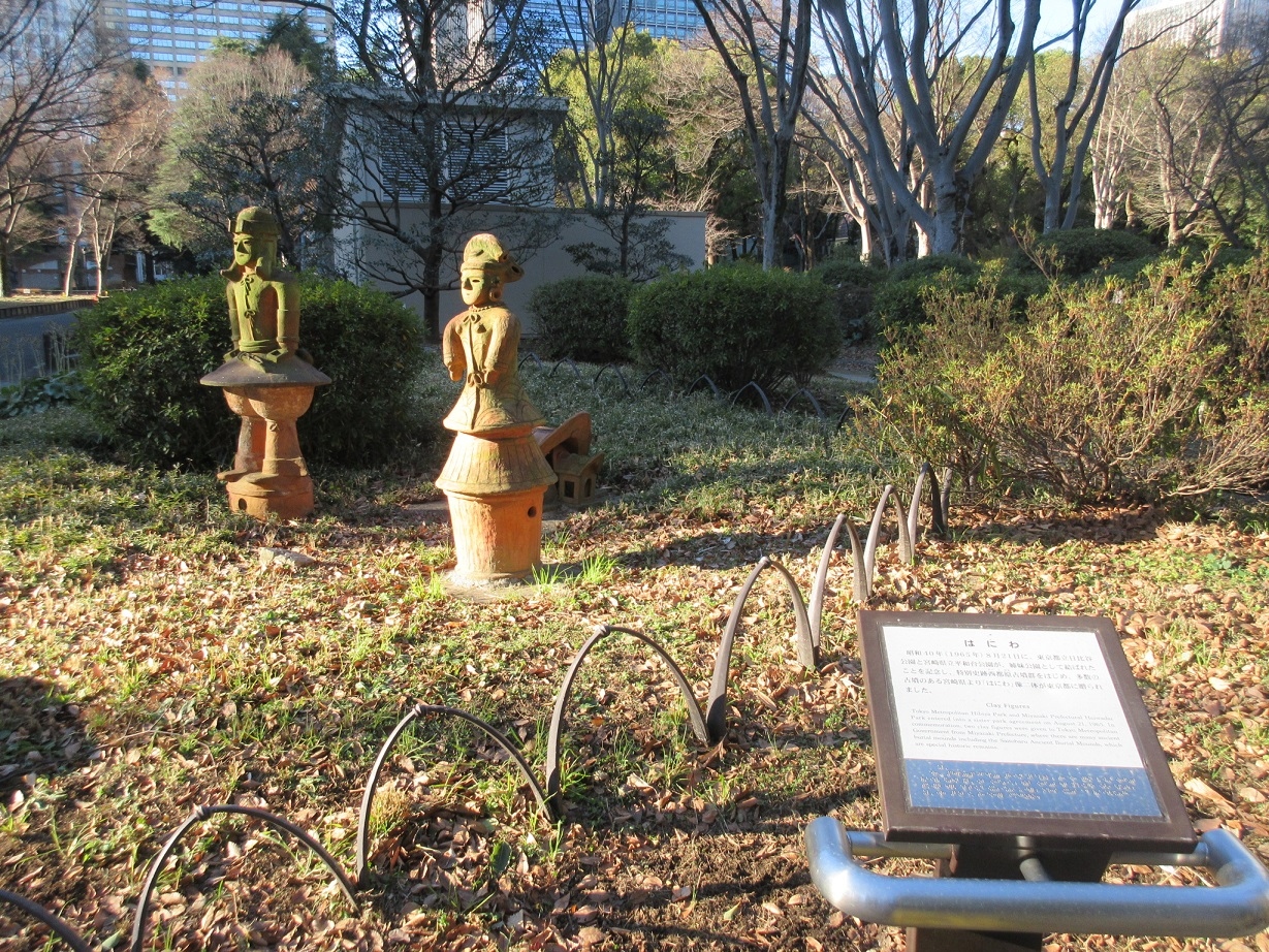 東京の有楽町からほど近い日比谷公園内をのんびり散策していた時に、雲形池に近い一角に、なぜか埴輪が置かれていて思わず足を止めました。説明書きを読むと宮崎県から贈られた古墳時代の埴輪とのことで、子供位の背丈があって異様な存在感を放っていました。夜見たらトラウマになりそうな気もしますが。