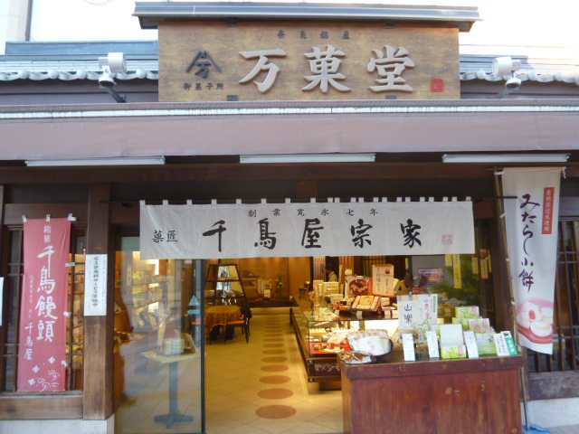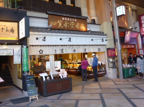 近鉄奈良駅のすぐ東から南に向かって伸びており、奈良らしい和菓子や食品店が多数。