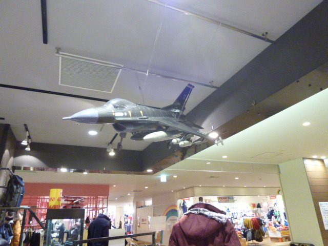 京都駅八条口前からほど近いイオンモールの中にあるメンズカジュアルファッションのお店で、「アメカジ」というのでしょうか、豊富なアイテムがそろっています。店頭に飾られたジェット戦闘機の模型が目を引きます。