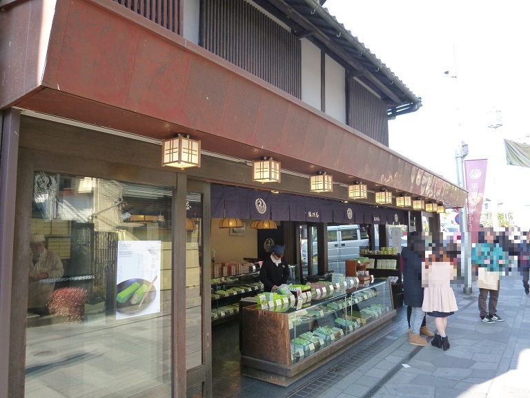 平等院の参道にあり、京阪電車の宇治駅からの観光客とJR宇治駅からの観光客が丁度合流するあたりに店舗がありますので、アクセスは非常に良いお店です。宇治茶はもちろんのこと、和菓子を多数取り揃えており、大勢の客で賑わっていました。