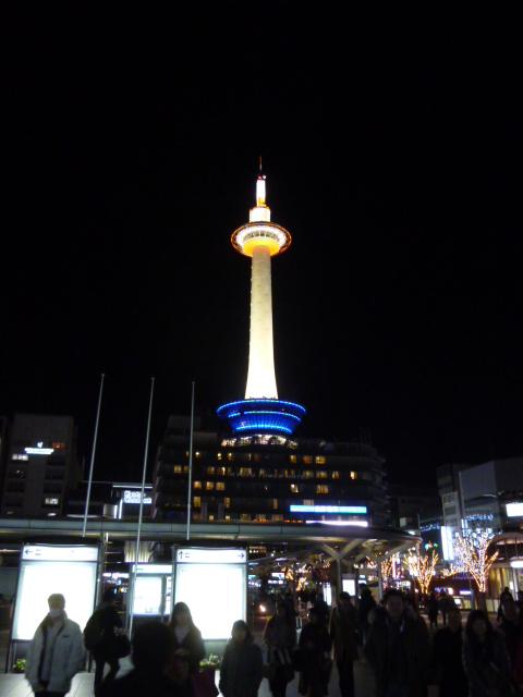 京都駅ビルを夜訪れ、南北自由通路より上層へ上がると天にとどくような大階段があります。ここを使ったイルミネーションは、階段を使うため他ではお目にかかることが出来ない立体感のある効果により見る者を虜にします。