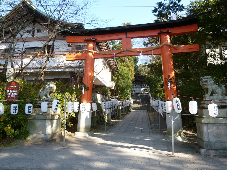 平等院見学の後で訪れました。橋を渡ると宇治神社が目に飛び込ん来ますが、その裏手に入ったところにあるのが宇治上神社です。応神天皇や仁徳天皇を祀っているようで、国宝の本殿はなんと平安時代に建立されたとのこと。寝殿造様式の拝殿も同様に国宝です。