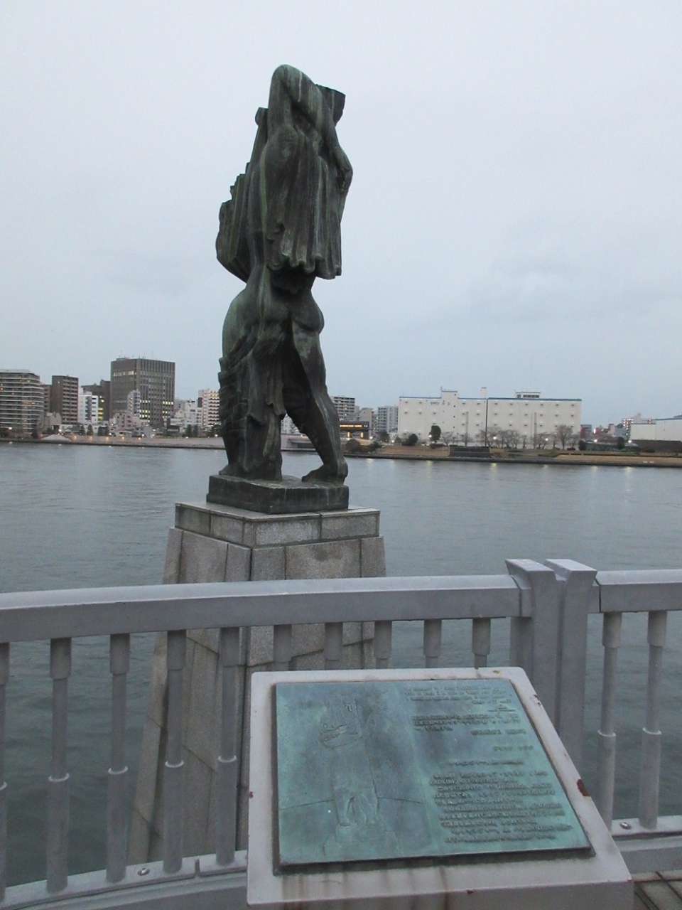 中央大橋の上流側歩道の中程にある、姉妹都市のパリから贈られた像がこの【メッセンジャー像】です。川の上流に向かって設置されていることから、橋を渡っていると後ろ姿しか拝むことが出来まず、すっきりしない感じが残りました。川下りの船に乗船しない限りは正面からの姿を見ることが出来ないわけで、ちょっぴり残念なスポットでした。