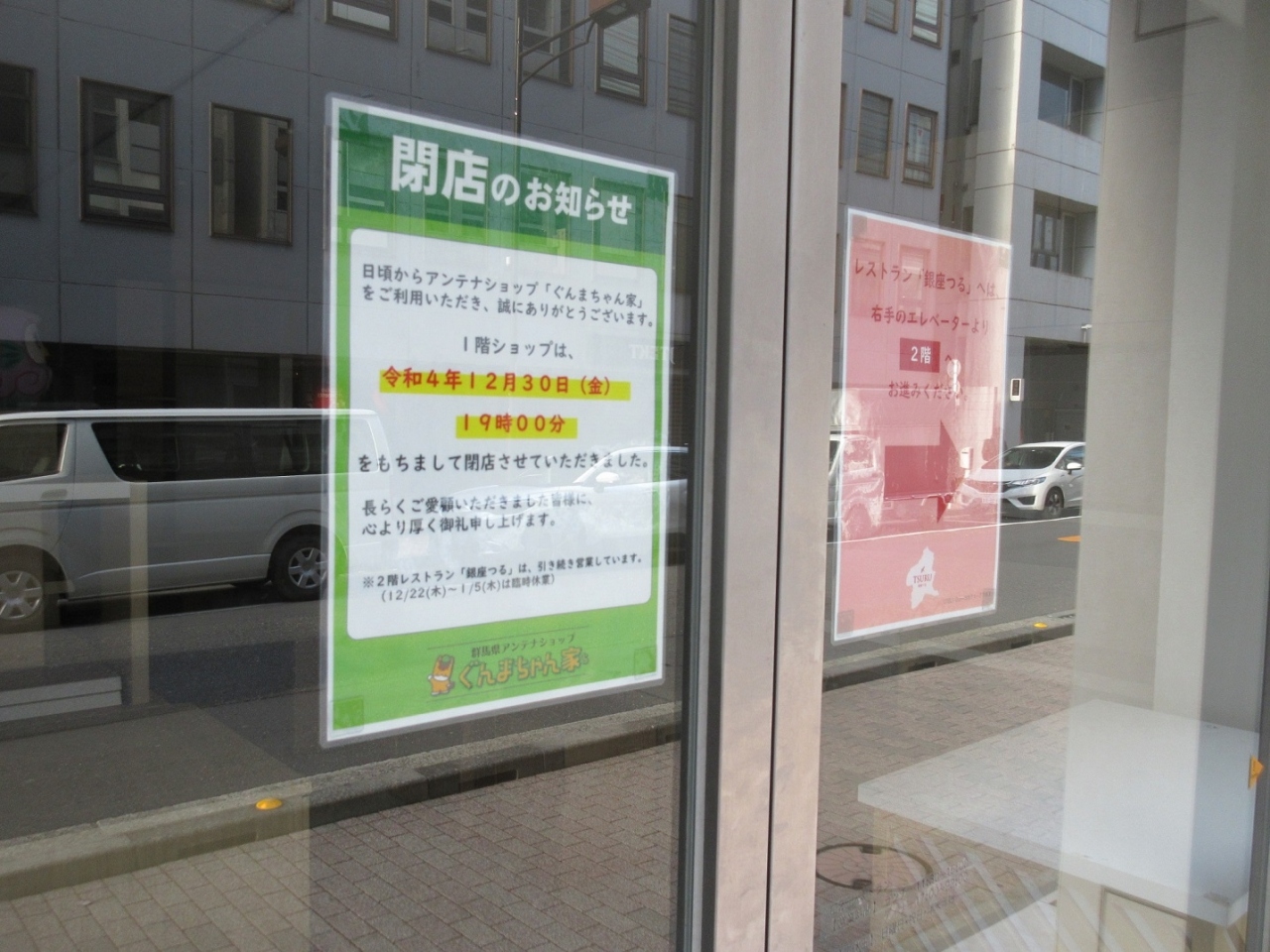銀座を散策した際、以前フォートラベルで地酒の取り扱いがあるとの記載があった、群馬県のアンテナショップである【ぐんまちゃん家】に立ち寄りました。ただ、かわいいゆるキャラの看板を見つけて近づいてみると、週末の昼下がりだというのに電気が消えていました。エントランスには「12月末で閉店しました」との張り紙が・・・。2階のレストランは営業を続けていると書いてありましたが、普段あまり馴染みのない群馬の地酒に興味があったので、大変に残念でした。