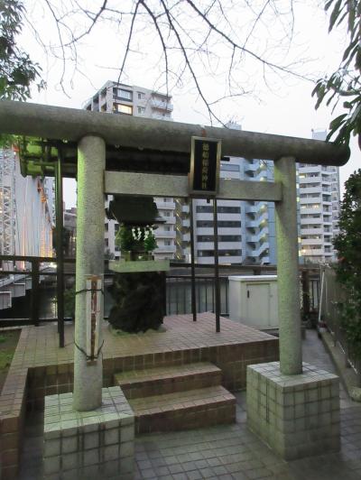 八丁堀界隈を散策した際に立ち寄りました。川の近くに在り、南高橋の橋の袂、北西側にあるこじんまりとして神社で、説明書きによると徳川家とも縁があった由緒ある神社とのこと。石の鳥居の奥には西洋風のタイル張りの土台の上に本殿があり、ちょっぴりアンマッチな印象を受けました。