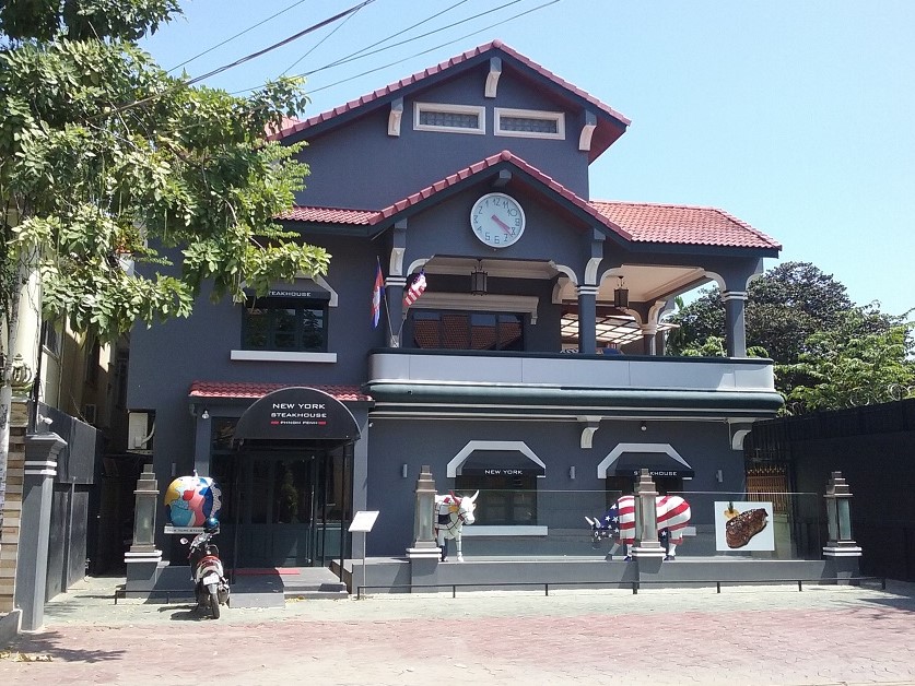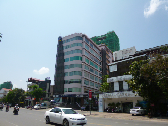 モニヴォン通りに面したオフィスビル、カンボジアに強い旅行会社が入居しています。
