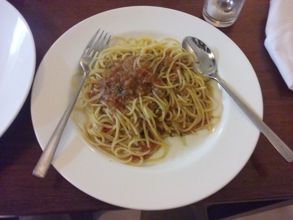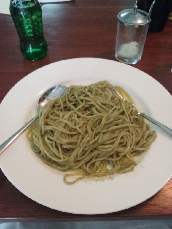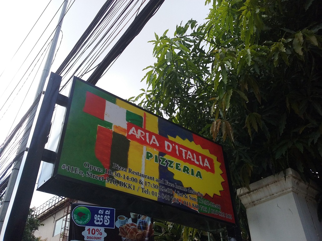 プノンペン市内に2店舗あるイタリア料理のお店です。手ごろなサイズのピザやスパゲッティのメニューが豊富ですが、後者については頼んだメニューにより当たりはずれがあります。写真はバジルのスパゲッティですが、途中で飽きてしまう位に大味でした。ランチメニューはピザとパスタのどちらかを選べ、それにサラダ・ソフトドリンク・デザート(バナナ)が付いてUS$9前後です。