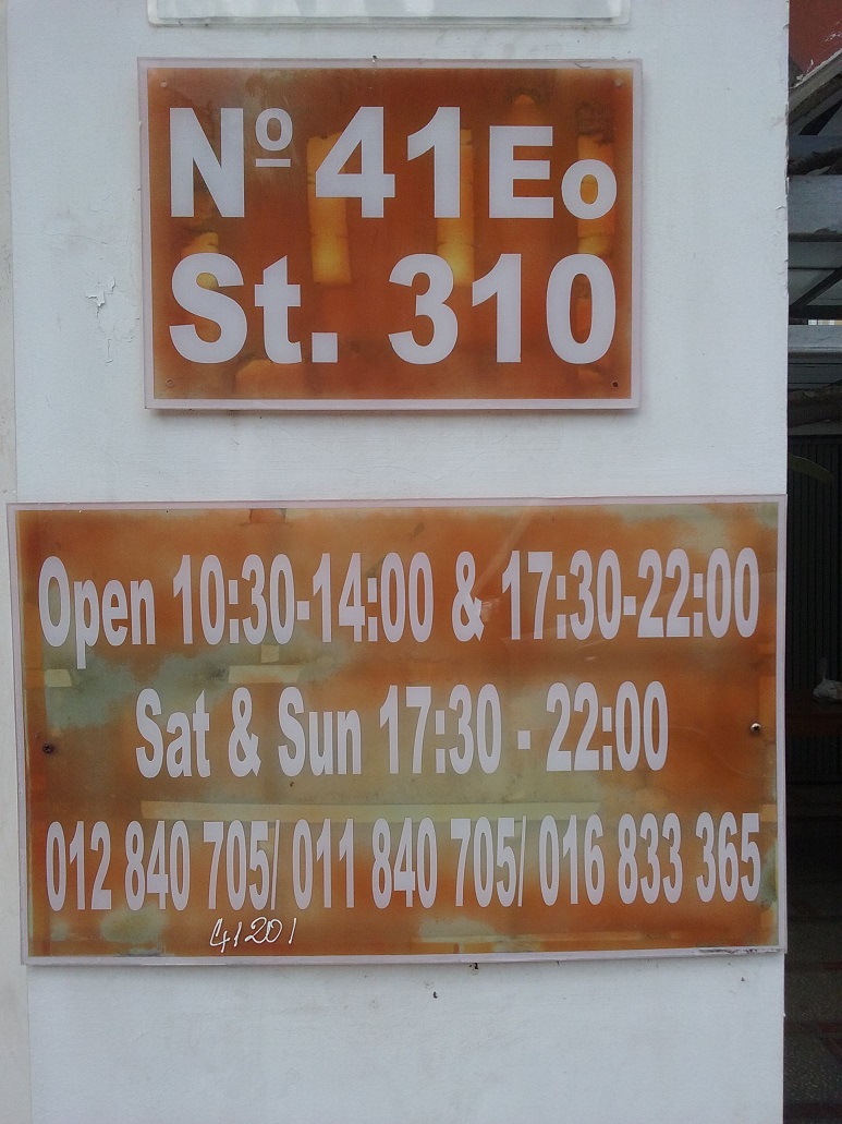 プノンペンでもグルメタウンとしてして知られるボンケンコンエリアから南北に延びる63通り(Street63)を南へ下り毛沢東通り(MaoTseToung Blvd.)を過ぎて直ぐ左手に位置する高級インド料理店です。私はチキンカレーとプレーンナン(2枚)、ラッシーをオーダーして約US$15。値段は少々高めですが、深い味わいのインド料理が楽しめます。