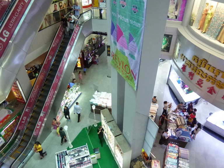 2014年にオープンしたイオンモールのカンボジア第一号店です。食品売り場はもちろん多くの買い物客で賑わっています。テナントは店舗によって集客に差があるようで、早晩見直しが入るでしょう。3階には吉野家や銀だこなどの日本食はもちろん、アジア各地の料理を楽しめる飲食店が多数入っていて目移りします。値段はカンボジアの平均所得からするとやはり高めなのでしょう、店の外まで行列ができるようなお店は皆無でした。
