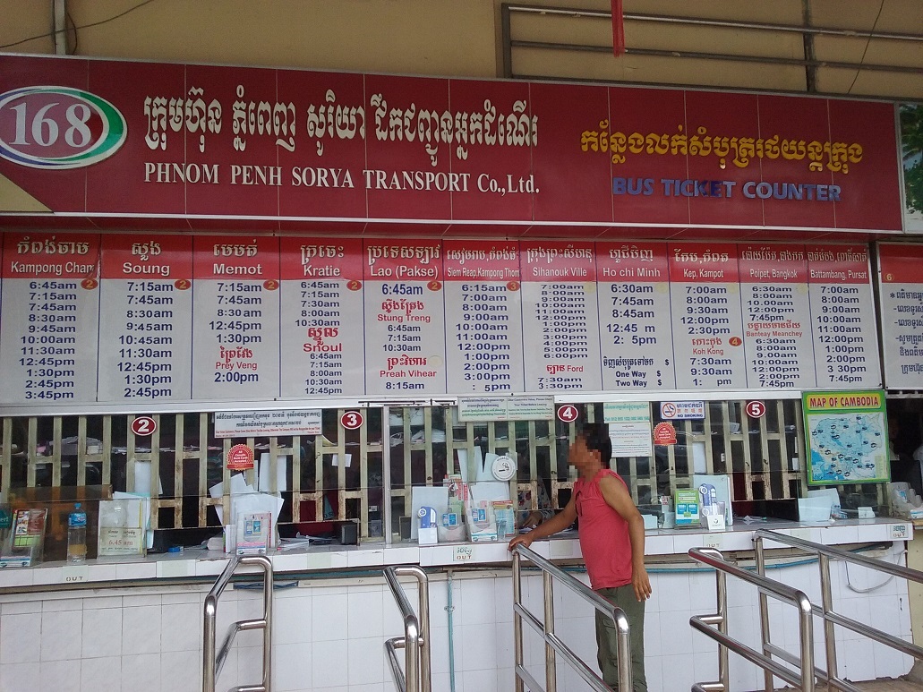 セントラルマーケットからすぐそば、かつソリヤショッピングセンターのすぐ裏手にあり、ロケーションは申し分なし。ただし、渋滞に巻き込まれると市内を抜けるだけで一時間近くを要することもあります。カンボジア国内主要都市はもちろん、国境を越えてベトナムのホーチミン、タイのバンコクへもここから行くことが出来ます。