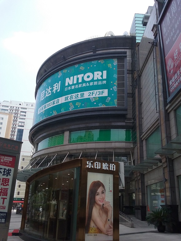 地下鉄二号線の中山公園駅の6番、5番の出口からすぐの場所にごく最近出来たお店のようです。「お値段以上、ニトリ」とは良く言ったもので、物価の高騰に品質がついて行っていない上海にあって、適正価格で販売する姿勢が中国人に支持されているのでしょう。多くの中国人が日本語メインの表記と睨めっこしながら家庭用品などを買い求めていました。