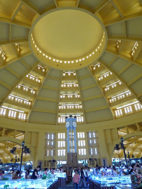 プノンペン市民の集まる庶民的なマーケットです。場所はワットプノムから王宮へ向かう丁度中間あたりで、食品や雑貨、工具などを扱う店が所せましと並んでいます。すれ違うのもやっとな位にオートバイクやトゥクトゥクが行き交い、東南アジアに来たことを実感させてくれます。
