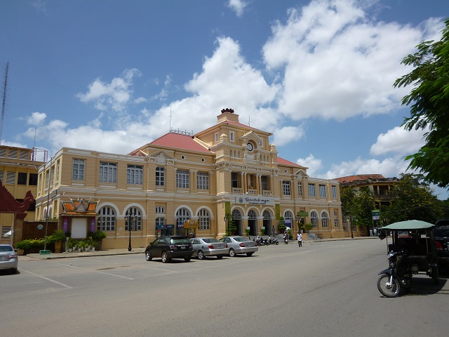 ワットプノンからナイトマーケット方面に向かう途中にあるコロニアル様式の黄色の建物です。この界隈は全体的にベトナムのハノイやホーチミンとも似たフランス的上品さの残るエリアとなっており、そうした時代の建物を利用した高級レストランなども楽しみの一つです。