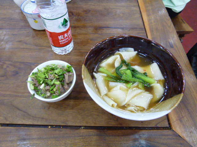 西安中心部の回民街にあり、いつも大勢の観光客で賑わっている「湯包子」という大き目の小籠包のお店です。この界隈は法外な値段のお店が多いのですが、ここは意外と良心的なようで野菜も頼んで28元(約560円)。むろん通常の「湯包子」を供する食堂に比べると二倍ほどしますが、ロケーションと味のバランスも考えると妥当だと思います。