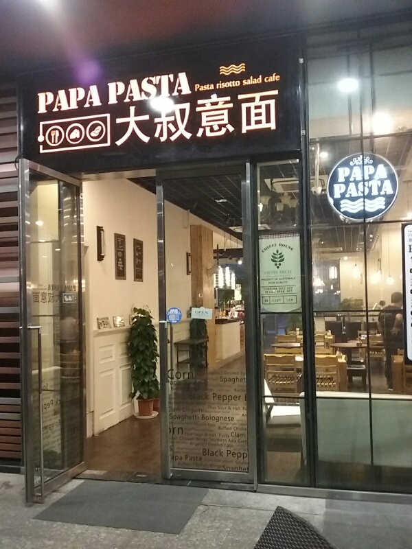 虹口を歩いた際に立ち寄りました。四川北路の地下鉄駅からも近い場所に、通りに面してユニクロが店を構えている「中信広場」という商業施設があります。カラフルなイルカのオブジェを超えて奥に入ったところにあるパスタ屋さんがご紹介するPapapastaです。好感の持てる、飾りすぎない内装の店内で食べるパスタは絶品で、私は?Tomato sauce with shrimp?Fried Chicken?Coke の3点頼んで59元(約1100円)でした。このエリアでは少し高めかもしれませんがPastaの味も良く満足できました。Fried Chickenの味は普通かな・・・。