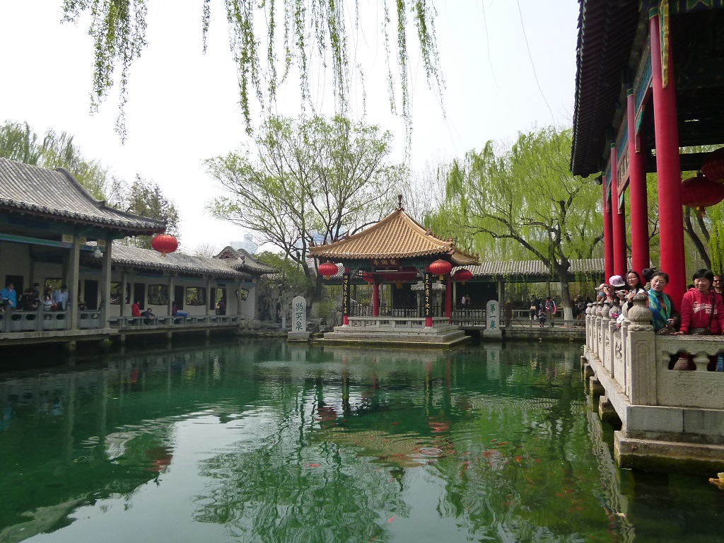 済南の市内中心部を一望できる場所で、嘗て仏教寺院が立ち並んだ山は市民の憩いの場所となっています。入山料(30元)を払って中に入りますと、最近造られた十八羅漢像が並ぶ並木を抜けた左手に、昭和の香りのする子供向けの遊園地があります。その奥にあるロープウェー(片道20元)でゆっくり10分以上かけて山上に上ると、スモッグにかすむ済南の街を一望できます。