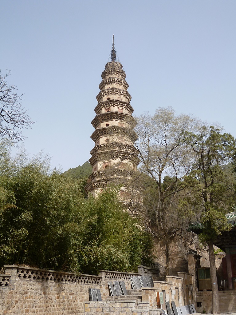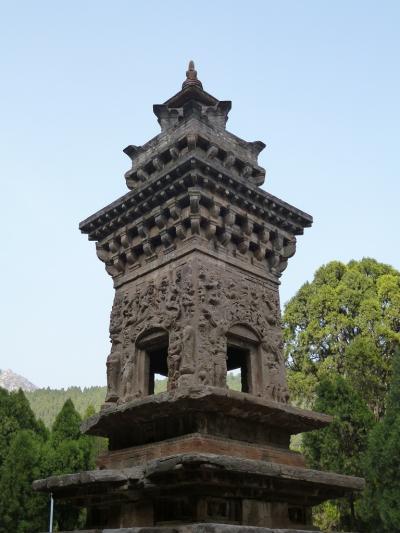 隋の時代、紀元7世紀の初めに建てられた非常に貴重な石塔で、中国の重点文物保護単位の一つに指定されています。16本の石梁で屋根を支える構造となっております。四方には門が設けられ中には四体の石像があり6世紀に彫られたものがこの場所に移設され安置されたと考えられています。