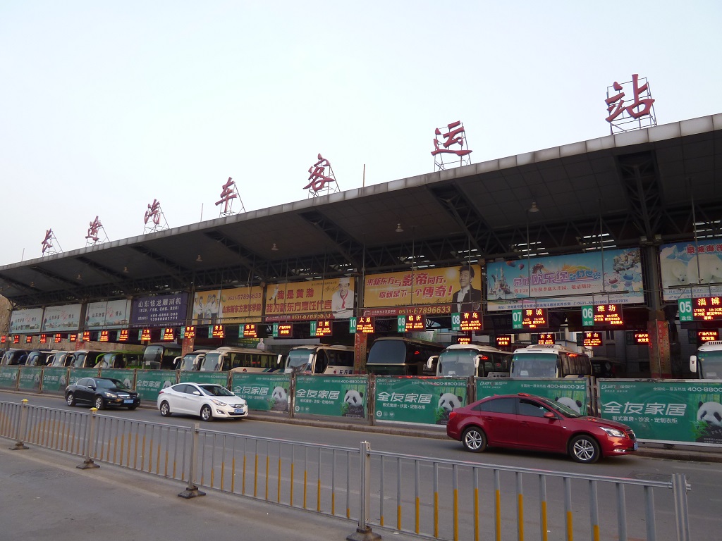 済南空港からのリムジンバスをはじめ、山東省諸都市へのバスがひっきりなしに発着しています。特に泰山で有名な泰安への便は毎時数本あり大変に便利です。チケット購入窓口は些かわかりにくく、駅から行くとバスの並ぶ間を奥へ入った場所です。なお、済南空港へのバスは毎正時発で20元、泰安へは27元です。