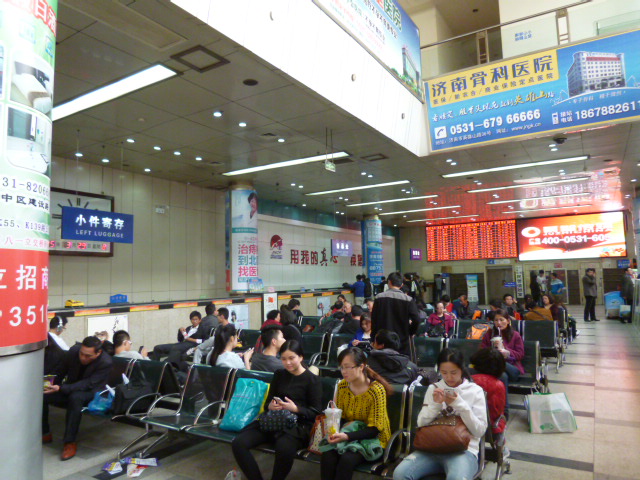 同じ山東省の青島をはじめ、各都市への列車が発着しており、駅構内およびその周辺は地面に横臥している農村からの出稼ぎ労働者も多く、上海や北京と比べやはり後進性を感じてしまいます。チケットの購入システムとしては今はオンラインで結ばれていることから、外国人でもパスポート番号と電話番号、銀行口座があれば予約・購入・受け取りができるようになっております。