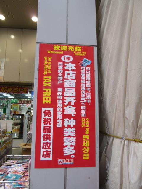 靖国通りに面して建ち、西武新宿線新宿駅やJR新宿駅からも近いヤマダ電機の大型店舗です。2月の春節の連休を利用した中華圏からの旅行者で大賑わいでした。免税手続きが簡単にできることなどを訴えるポスターを張り出すなど、店側も集客に余念がありませんでした。