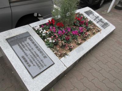 築地から築地川を新富町側にわたった道路わきに、【救世軍渡来記念の地】を示す碑が置かれていました。花壇と一体になって背の低いパネルのような形状で、うっかりすると見落としてしまうような、控え目が感じがする碑でした。東京では年末の炊き出しなどで知られる一種のボランティア団体ですが、それがイギリスから伝わってきた団体ということをこの説明文を見て初めて知りました。