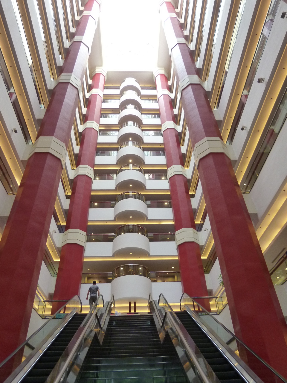 上海を東西に結ぶ地下鉄2号線から直結ですが、入口が些か分かりにくいのが難点。ショッピングモールの中に入ってしまうと方向が分からなくなりますので要注意。チェックインも一階ではなく、オフィスの入る低層フロアーを過ぎて中層にあるロビーまで上がる必要があります。