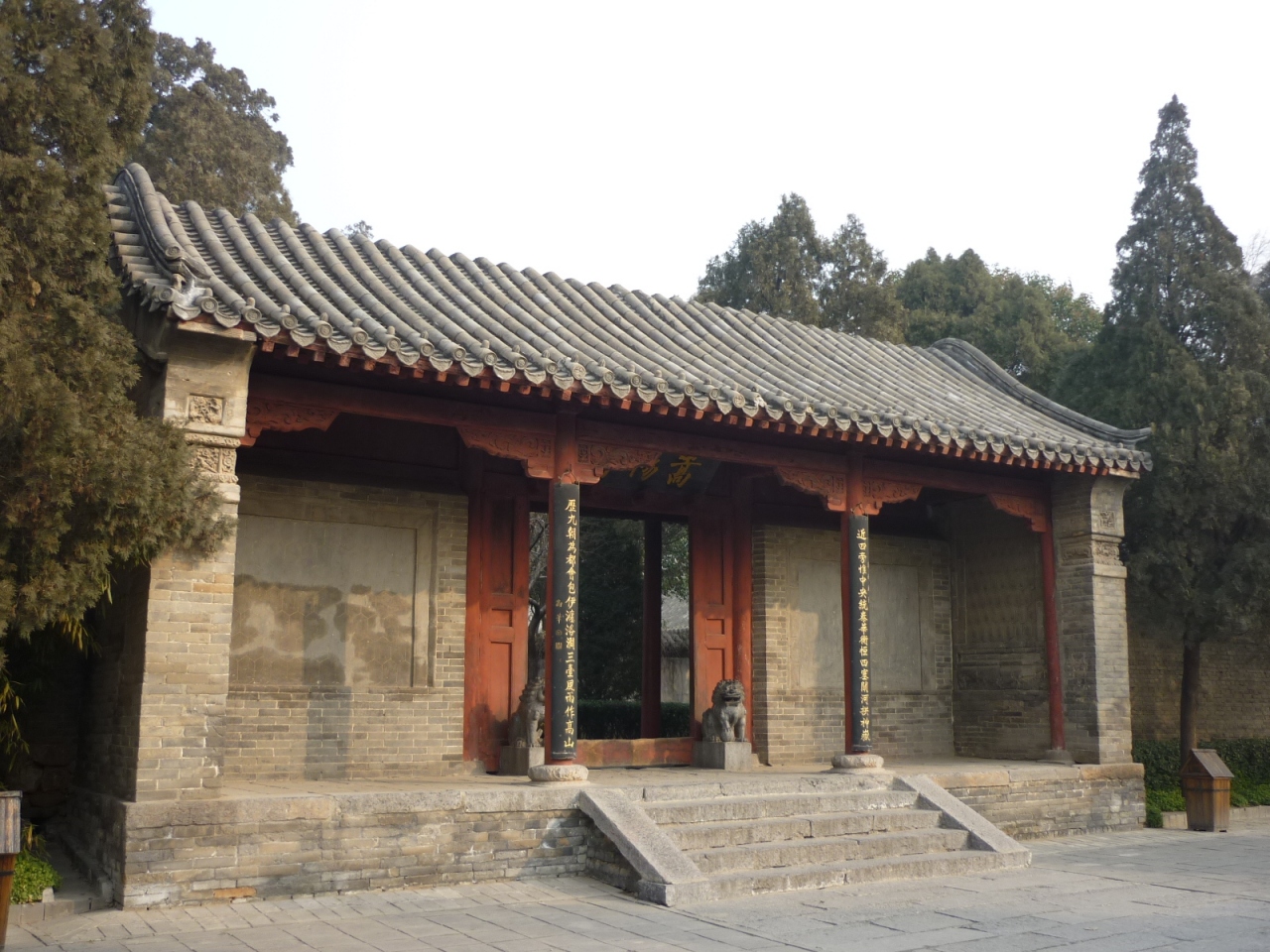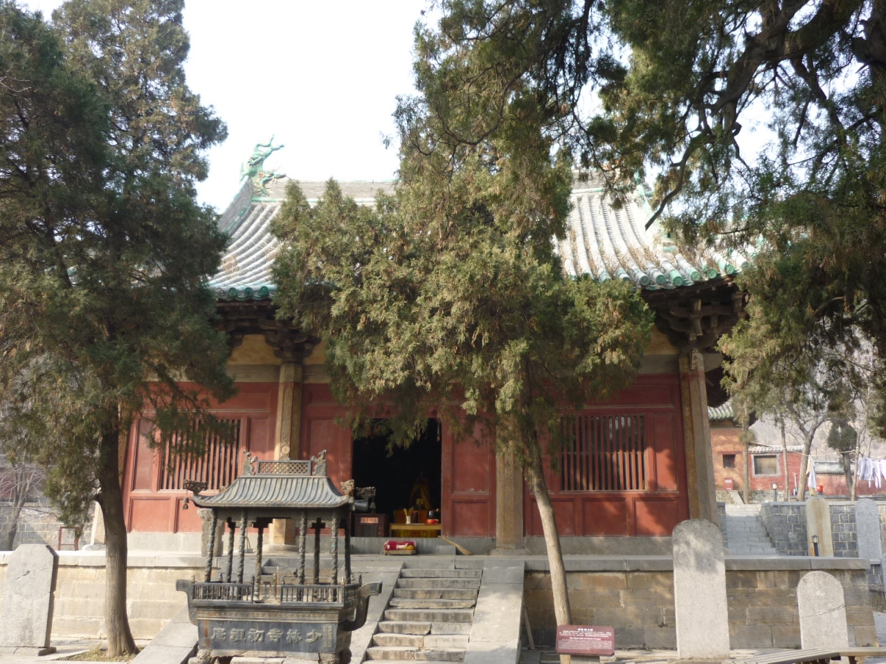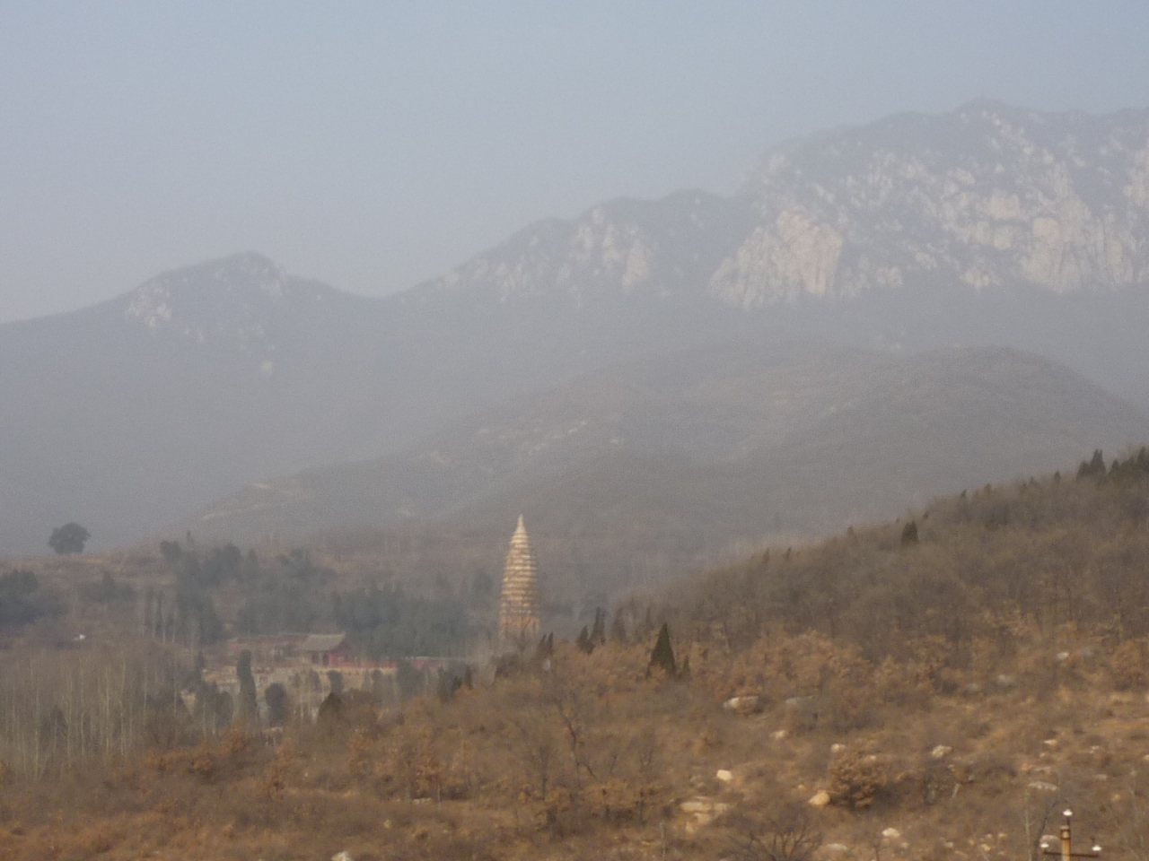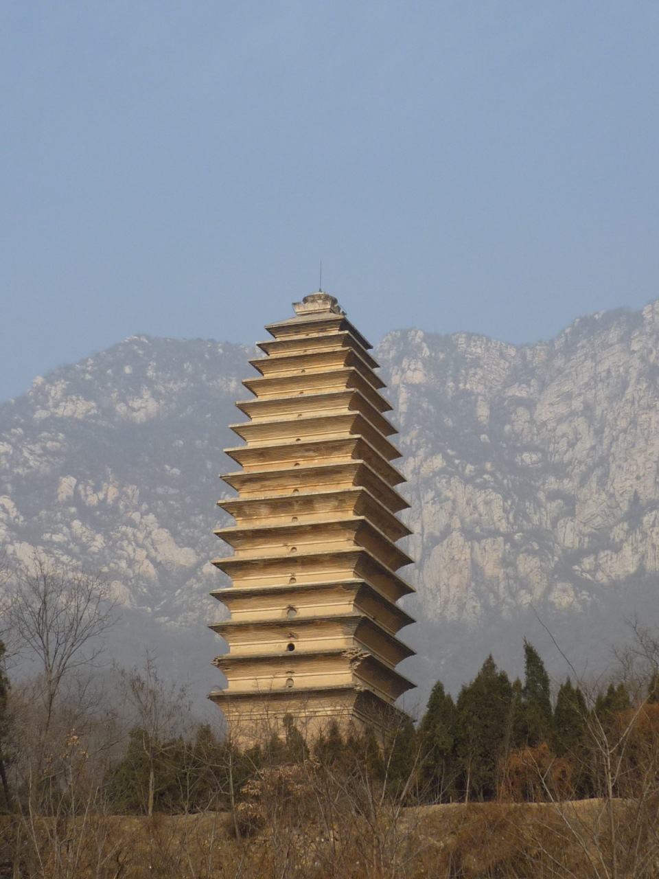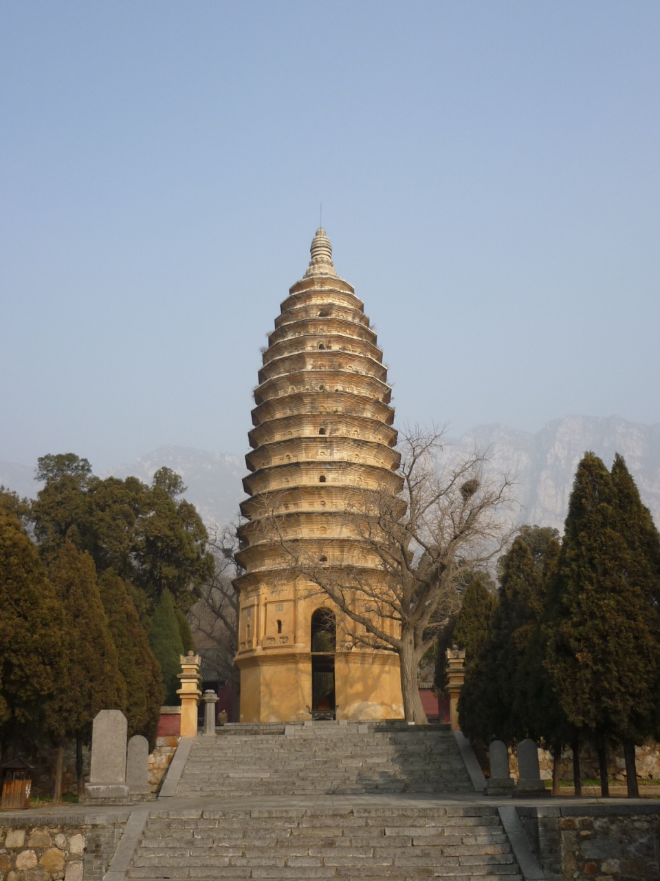 白馬寺と同時期に創建され、中国でも有数の長い歴史を誇る寺院です。堂宇は以外と新しいのですが、裏手に回ると畑の中に見えてくる隋代の建築とされる法王寺塔(舎利塔)は歴史の風雪に耐え見ごたえがあります。嵩山を背にして孤高の姿でそびえる15層、高さ45mの美しいフォルムは、実に中国らしい景観で訪れる人を魅了しています。嵩陽書院からタクシーをチャーターして、嵩岳寺塔や少林寺と合わせて訪れては如何でしょうか。
