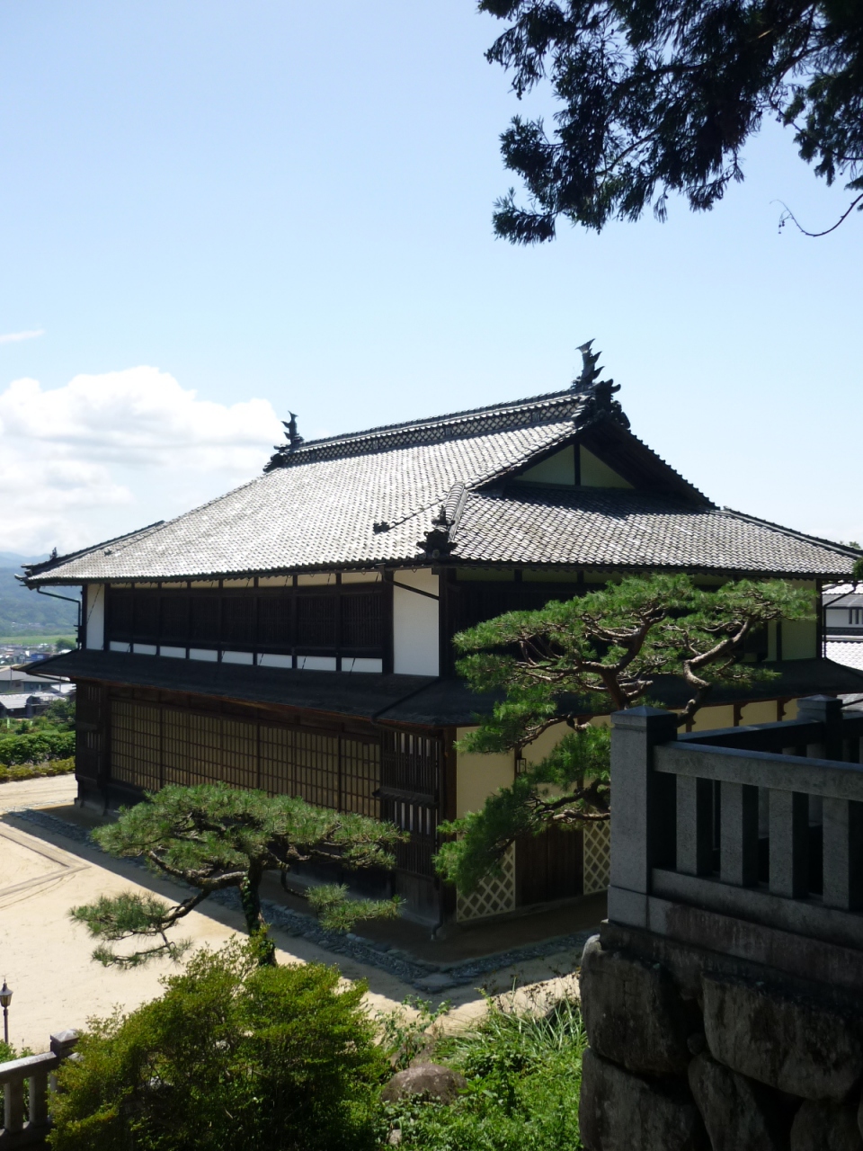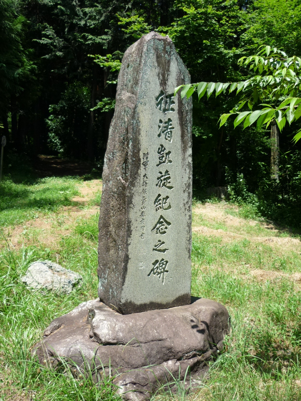 また裏山には「麻績神社」という苔むしたお社があります。さらにその横には旧校庭や天竜川や伊那山脈まで一望できる公園があり、山縣有朋の筆による「征清凱旋紀念之碑」という石碑が残されています。1895年の明治時代の国際社会の出来ごとの影響が、都から遠く離れたこうした地方にも着実に及んでいたことを窺い知ることが出来ます。
