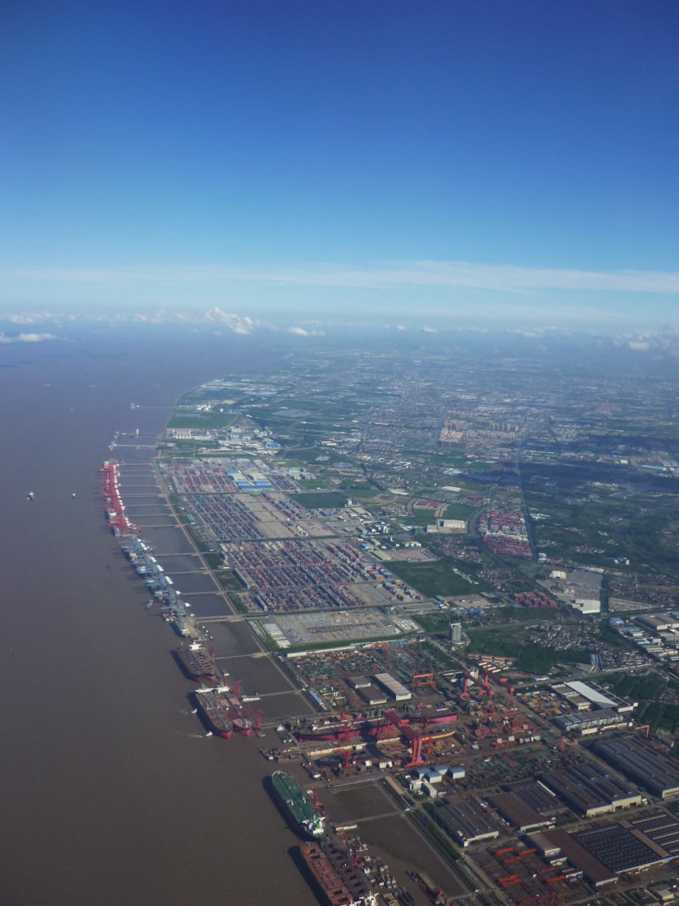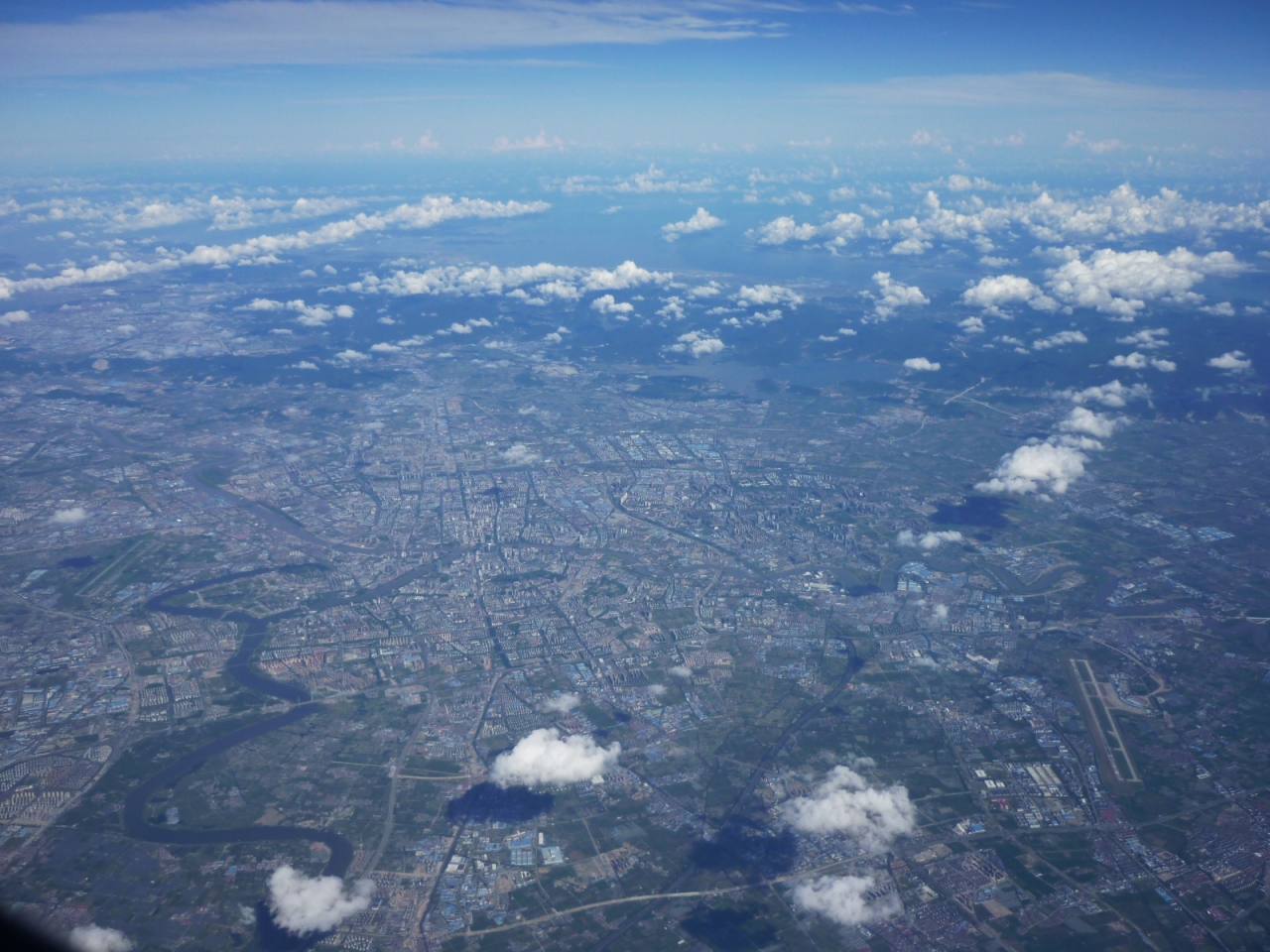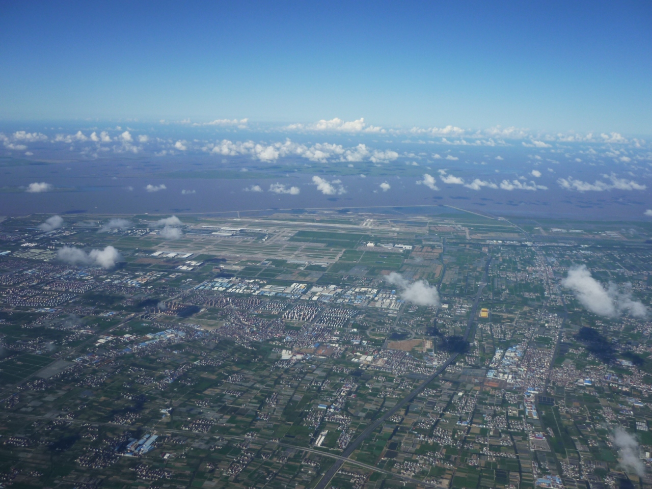 上海の浦東国際空港はアジアの拠点空港の一つに成長しました。上海発のマカオ・香港の旅を終えて、LCC春秋航空便で上海に戻った際に、非常に珍しい快晴の上海浦東空港の空撮に成功しました。寧波上空を右下に寧波空港を望みつつ北上、その後浦東空港の3本の4000m滑走路を確認しつつ更に北上。海上で港湾施設を見下ろしながら大きく右旋回、着陸への最終態勢を取ります。空港そのものは非常に便利で、荷物が少なければ地下鉄2号線が浦東空港と上海市内、さらに虹橋空港を結んでいます。地下鉄の空港駅には「東方既白」「ケンタッキー」などファストフードの店も隣接しています。
