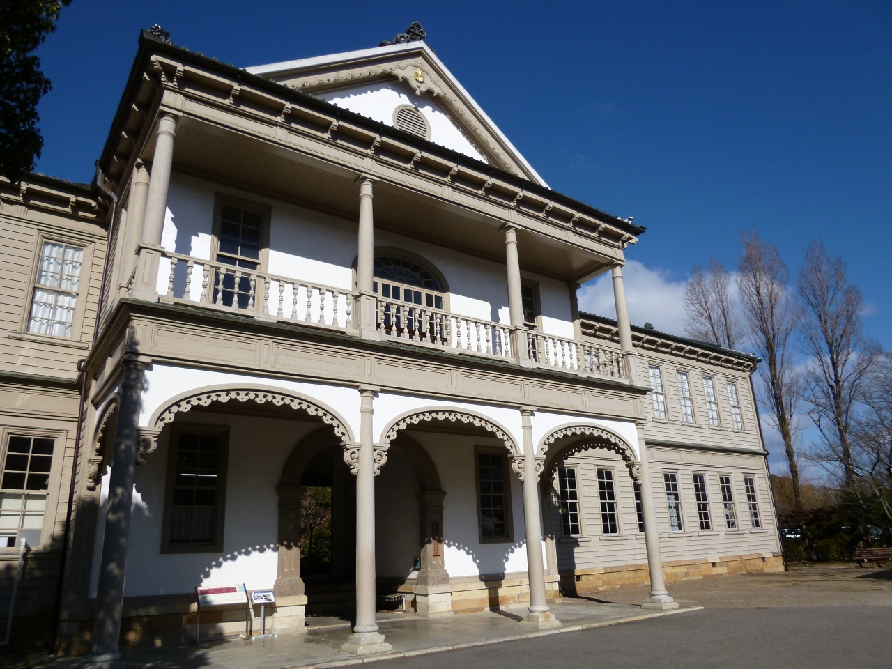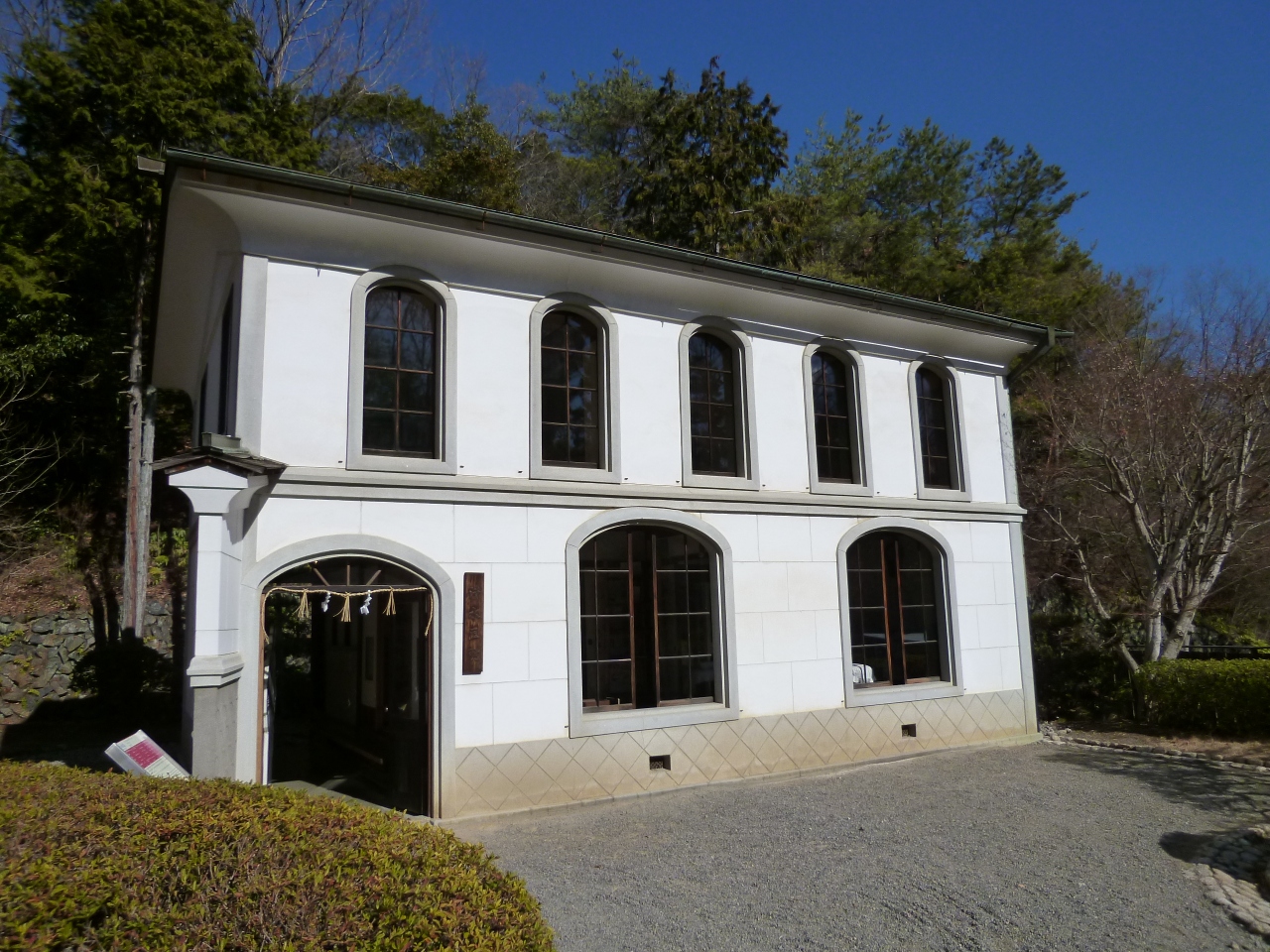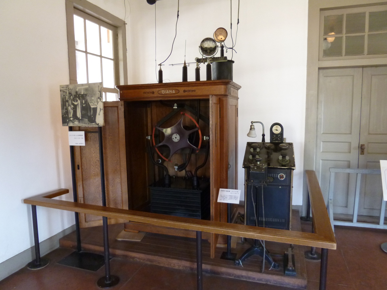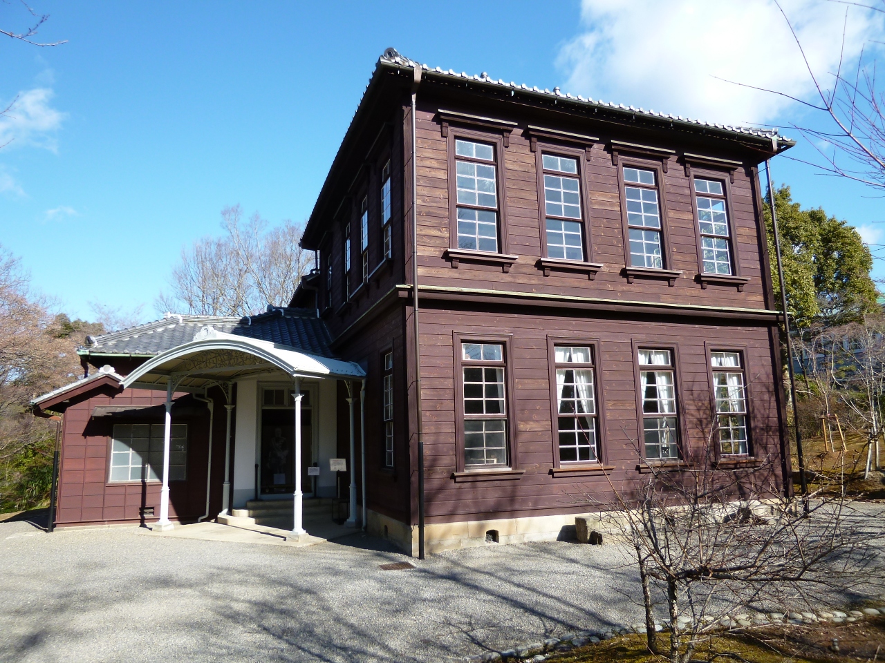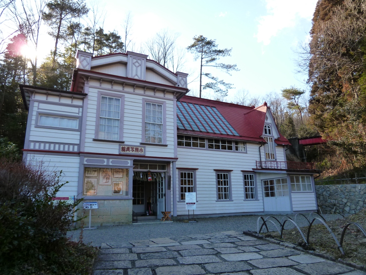 明治期、雪深い新潟県上越市に建てられた写真館です。明治村では比較的地味で目だない存在かもしれませんが、東京から遠く離れた地方都市である上越市に、こうした意匠を凝らした洋館が建てられ、多くの市民の姿を写真という形で残す役割を果たしてきたことに、敬意を感じます。日本にスキーを伝えたレルヒ少佐が指導にあたったのが、この町であったため、彼の写真なども展示されています。二階の写真スタジオでは、天然光を取り入れる工夫がされたガラス張りの天井や、記念撮影の背景を飾った書割りなど見学することが出来ます。