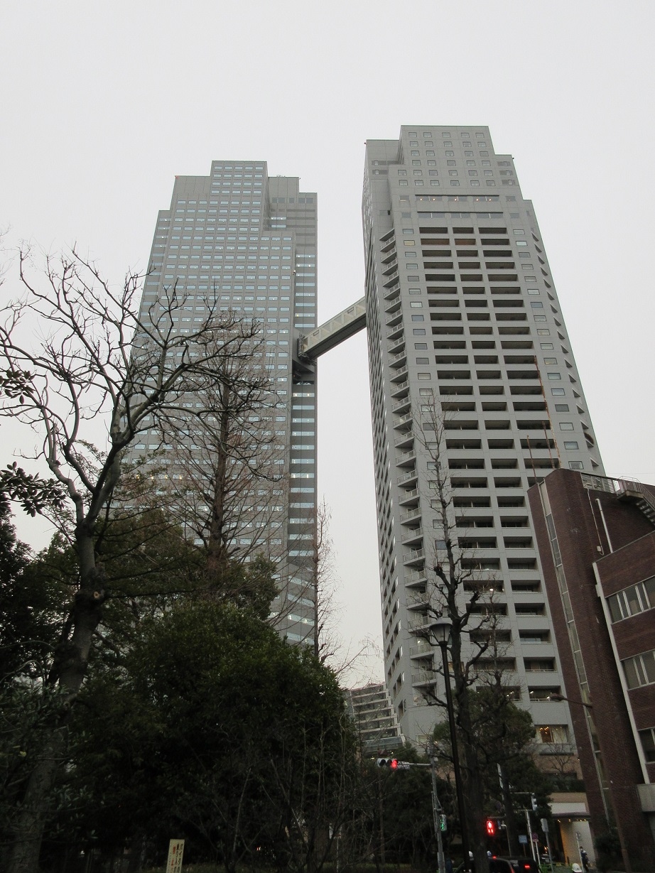 築地界隈を散策した際、街歩きの目印になったのがこちらのツインタワーです。30年近く前に開業したビルですが、上層階に適度に凹凸を効かせたデザインは、今でも新しく感じられます。対岸の佃島からも良く目立っていて、景観に欠かせない存在感のあるビルでした。